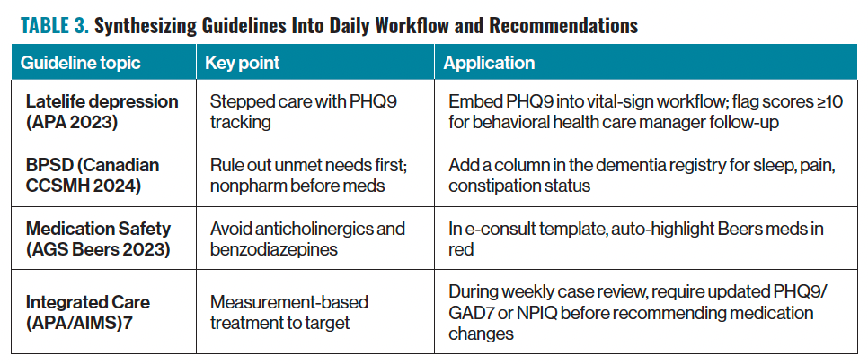 See Table 3 for recommendations on synthesizing guidelines into your daily workflow.7